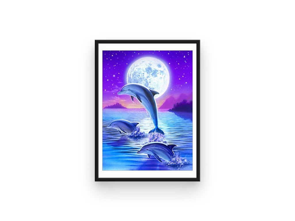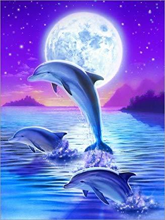 PASSEZ UN MERVEILLEUX MOMENT EN RÉALISANT CETTE BRODERIE DIAMANT MONTRANT UN SPECTACLE RARE ET SPLENDIDE DE DAUPHINS AU CLAIR DE LUNE ! LE PAYSAGE DE FOND, AUX TONS DE ROSE ET DE VIOLET APPORTERA UN SENTIMENT DE FÉERIE.