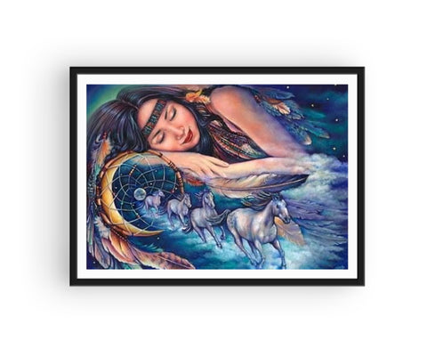 Faites de beaux rêves... La Broderie Diamant Attrape Rêve Chevaux veille à ce que vos mauvais rêves soient détruis à tout jamais ! Cette toile va beaucoup plaire aux férus de zenitude en quête de calme spirituel. En effet l'attrape rêve est réputé pour ses vertus anti mauvaises ondes. À vous désormais de chasser ces ondes en confectionnant une œuvre unique en son genre grâce aux diamants brillants.