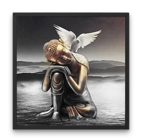 QUE DÎTES-VOUS DE CETTE BRODERIE DIAMANT COMPORTANT PLUSIEURS SYMBOLES SPIRITUELS ? NOUS POUVONS Y VOIR BOUDDHA AGENOUILLÉ ET APAISÉ, AVEC UNE COLOMBE SUR SON ÉPAULE. CETTE BRODERIE DIAMANT DÉGAGE UNE ONDE DE PURETÉ ET DE CALME, IDÉALE À CONFECTIONNER AVEC LES PERSONNES QUE VOUS AIMEZ...