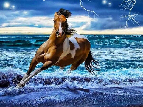 CONTEMPLEZ L'ÉLÉGANCE ET LA FORCE DE CE CHEVAL SUR UN DÉCOR DE MER DÉCHAÎNÉE. LA BRODERIE DIAMANT CHEVAL PUISSANT NOUS RAPPELLE À QUEL POINT LA NATURE EST PUISSANTE, MAIS SURTOUT ELLE NOUS OFFRE UN DÉCOR À COUPER LE SOUFFLE ! COLLEZ VOS PERLES ÉTINCELANTES DESSUS ET SOYEZ DÉTENDU.