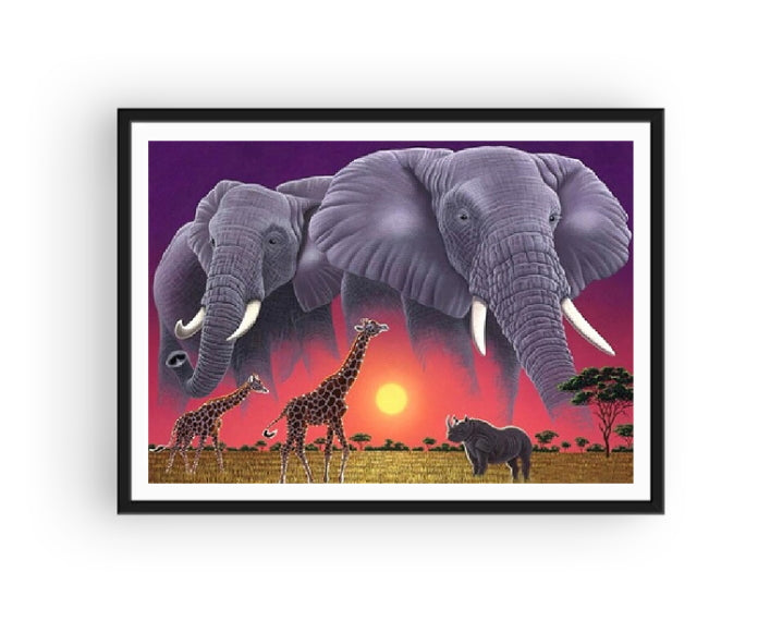 Souvent représenté comme un animal très spirituel, l'éléphant est un véritable emblème dans la savane... Sur cette Broderie Diamant Éléphants et Savane nous pouvons voir ces géants surplombants l'horizon, tels des esprits veillant sur les animaux de la prairie. Chassez vos ondes négatives et laissez ces éléphants étincelants vous apporter des pensées positives, grâce à un moment de confection unique en son genre. Relaxation garantie !