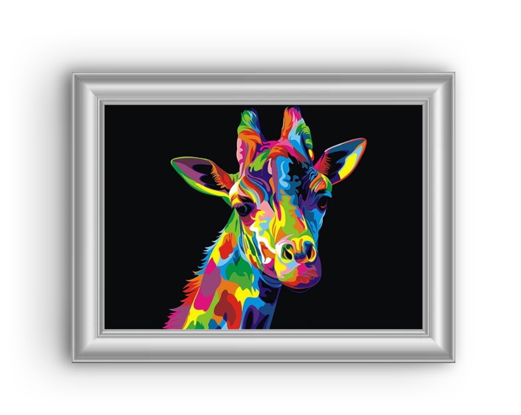UN LONG COU, UNE ROBE TACHETÉE ET UNE LANGUE BLEUE ? VOUS L’AUREZ DEVINÉ, IL S’AGIT D’UNE JOLIE GIRAFE SUR CETTE BRODERIE DIAMANT ! CET ÉTONNANT ANIMAL PRÉSENT DANS LA SAVANE EST EXTRÊMEMENT FASCINANT. QUE PENSEZ-VOUS D’AVOIR UN EXEMPLAIRE VERSION TOILE À BRODER CHEZ VOUS ? LES JOLIS DIAMANTS LUI IRONT SI BIEN...