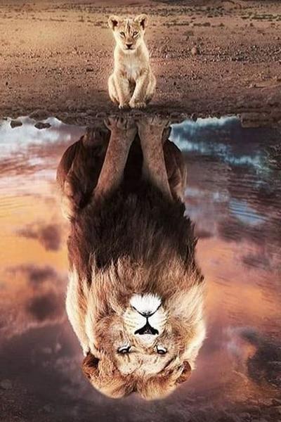 L'ANIMAL LE PLUS MAJESTUEUX ET LE PLUS FORT DE LA SAVANE EST REPRÉSENTÉ SUR UNE BRODERIE DIAMANT D'EXCEPTION. CE JEUNE LION OBSERVE SON REFLET DANS L'EAU, ET SE VOIT DÉJÀ GRAND ET FORT. APPORTEZ DE LA BRAVOURE À VOTRE INTÉRIEUR AVEC UNE TOILE MAGNIFIQUE. DIAMANTS BRILLANTS ET DÉCORATION UNIQUE À LA CLÉ...