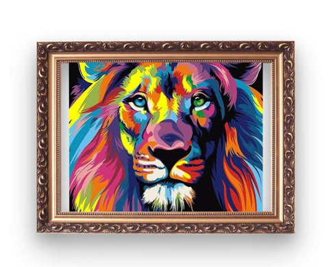 LE ROI DE LA JUNGLE EST COLORÉ SUR CETTE TOILE ! VOUS AIMEZ CE FÉLIN MYTHIQUE ? DANS CE CAS CETTE BRODERIE DIAMANT EST FAITE POUR VOUS... N'ATTENDEZ PLUS ET VENEZ PRENDRE D'UNE PLAISIR LORS D'UNE SESSION BRODERIE... PRATIQUER NOTRE ACTIVITÉ CRÉATIVE FAVORITE EN POSANT DES DIAMANTS SUR DES ANIMAUX MAGNIFIQUES, IL N'Y A RIEN DE MIEUX...