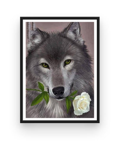 La Broderie Diamant Loup et Rose Blanche a des allures de dessin réalisé aux crayons... Quoi qu'il en soit, elle représente un magnifique loup qui tient en sa bouche une rose blanche, symbole de pureté. Ce mélange animal et végétal fait de cette toile à broder une véritable œuvre d'art qui plaira à tous les brodeurs et brodeuses du monde !