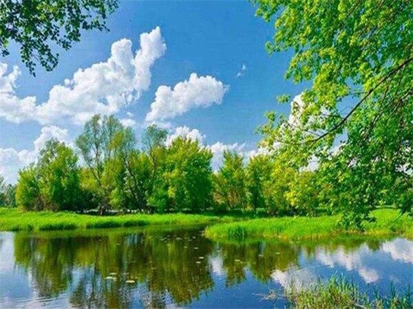 ADOPTEZ CETTE BRODERIE DIAMANT AU PAYSAGE D'UN VERT INTENSE. CONTEMPLEZ LE REFLET DE CES ARBRES AINSI QUE CE JOLI CIEL BLEU, IDÉAL POUR DÉCORER SON INTÉRIEUR N'EST-CE PAS ?