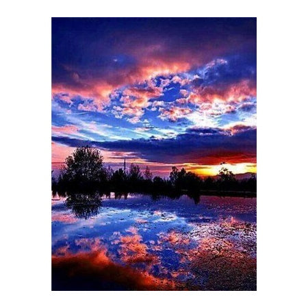 VOICI UNE VÉRITABLE OEUVRE D'ART QUI REPRÉSENTE UN PAYSAGE TOUT SIMPLEMENT EXQUIS ! CE POINT D'EAU QUI REFLÈTE LE CIEL ET TOUTES SES COULEURS CHAUDES ET CHALEUREUSES, EST A BRODER SANS MODÉRATION. UNE BRODERIE DIAMANT À AFFICHER FIÈREMENT CHEZ VOUS, MAIS SURTOUT À CONFECTIONNER AVEC BONHEUR.