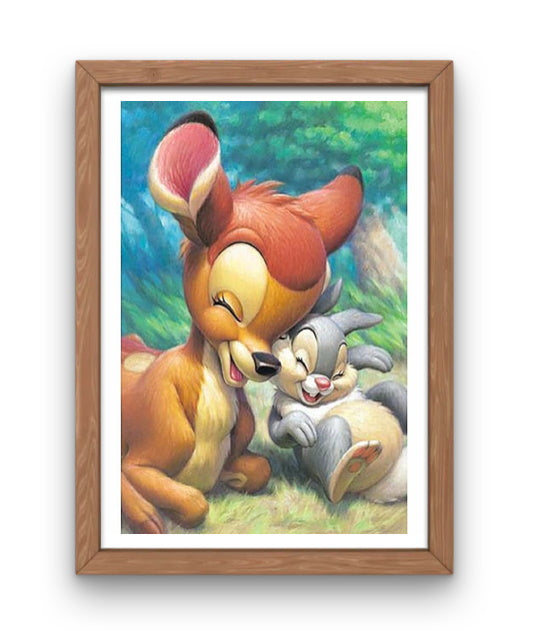 UNE BRODERIE DIAMANT REMPLIE D'AMOUR ET DE JOIE, QUE DEMANDER DE PLUS ? NOTRE BICHE PRÉFÉRÉE TIRÉE TOUT DROIT DES STUDIOS DISNEY À L'AIR DE DRÔLEMENT BIEN S'AMUSER AVEC SON AMI LAPIN PANPAN ! CONFECTIONNEZ CETTE MAGNIFIQUE TOILE, DÉTENDEZ-VOUS ET SURTOUT PASSEZ UN BON MOMENT ARTISTIQUE À LA MAISON... MILLE ET UNS DIAMANTS BRILLANTS AU RENDEZ-VOUS !