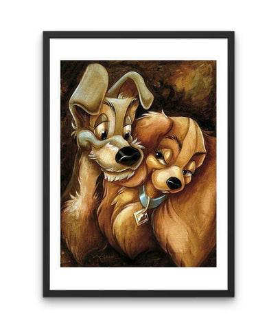 TANT D'AMOUR DE ROMANTISME RENVOYÉS PAR CES ADORABLES CHIENS... VOUS LES AUREZ RECONNUS, IL S'AGIT ICI DE LA BELLE ET LE CLOCHARD. CES DEUX PERSONNAGES SORTIS TOUT DROIT DE L'UNIVERS DISNEY SONT REPRÉSENTÉS SUR CETTE SPLENDIDE BRODERIE DIAMANT ! A BRODER SEUL OU EN FAMILLE, ET N'HÉSITEZ SURTOUT PAS À L'ENCADRER... UNE DÉCORATION D'EXCEPTION.