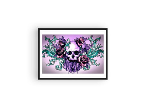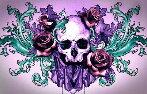 ADOPTEZ CETTE SPLENDIDE BRODERIE DIAMANT À L'EFFIGIE D'UN CRÂNE AUSSI FLEURI QUE TERRIFIANT ! AVEC SES ROSES ROUGES, CETTE TÊTE DE MORT APPORTERA SA TOUCHE ROCK'N ROLL À VOTRE INTÉRIEUR.