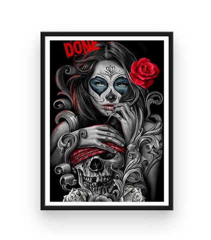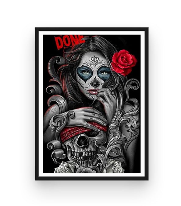 Ce Kit Broderie Diamant Tête de Mort très rock'n'roll nous montre un crâne portant un bandeau de pirate, ainsi que sa femme derrière. Ce couple de squelettes apporte une ambiance sombre et originale qui sort du lot... Une vraie décoration unique comme on les aime ! Il ne manque plus qu'à y coller vos strass étincelants.